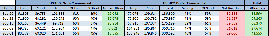 Hey traders, hope your having a great weekend so far as we settle into the first few days of Fall! Starting to get a little crispy outside where I am in Ontario, Canada. This week was pretty decent in terms of price action, still seeing a lot of consolidation playing out but we had some data on Friday that got things to start moving a little more. This coming week we have a lot of data being released that should keep the momentum moving along and give us some great opportunities for trades. I think this will be the week we will see some price break outs from the trading ranges we have been stuck in. Now that September has come to and end, I also want to take a look at how this month looks from a bigger perspective. So let's take a look at the latest results from the report, and remember, the following data was the positions of the institutions leading into the Non-Farm figures released Friday!