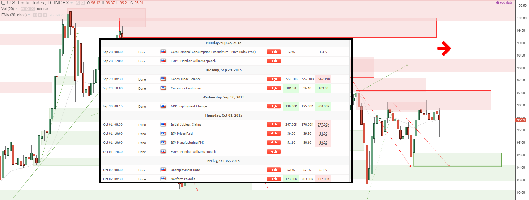 SHADED RED ZONES = Strong Sell Zones